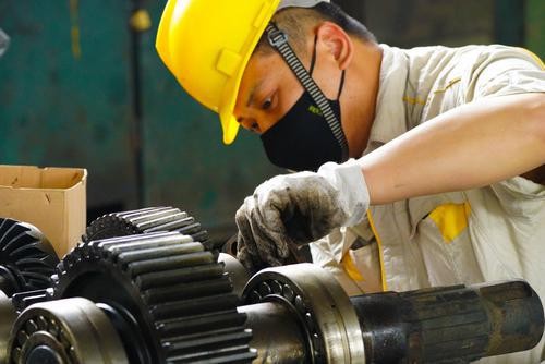 中煤新集公司機修廠工作人員精修設(shè)備,確保電煤供應(yīng)。