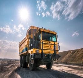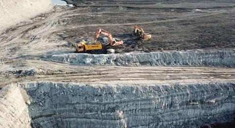 礦區(qū)正在作業(yè)的礦車和挖掘機
