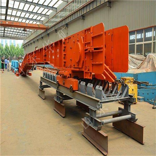 刮板轉(zhuǎn)載機是一種可以縱向整體移動的重型刮板輸送機,其長度較小,便于隨著采煤工作面的推進(jìn)和帶式輸送機的收縮而整體移動。轉(zhuǎn)載機安裝在采煤工作面運輸巷中,與可伸縮帶式輸送機配套使用,同工作面刮板輸送機銜接配合順槽用刮板轉(zhuǎn)載機有軋制中部槽組裝式和整體組焊箱式結(jié)構(gòu)兩種,主要用于綜合機械化采煤,在長壁工作面刮板輸送機和順槽可伸縮皮帶機之間起轉(zhuǎn)載輸送煤炭的作用。使用轉(zhuǎn)載機后,可以避免順槽可伸縮皮帶機機尾的頻繁移動,從而保證工作面生產(chǎn)的順利進(jìn)行。刮板轉(zhuǎn)載機主要應(yīng)用于高產(chǎn)、高效綜合機械化工作面順槽轉(zhuǎn)載輸送煤炭。它是由中部槽、鏈條、刮板及牽引系統(tǒng)組成。