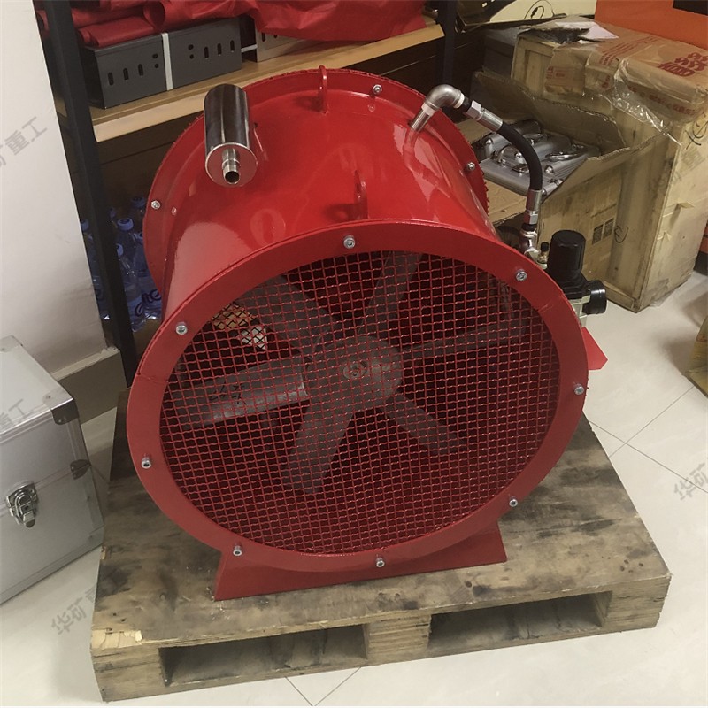 FQ系列礦用氣動壓入式軸流局部通風(fēng)機(jī)(以下簡稱為通風(fēng)機(jī)),是一種由氣馬達(dá)驅(qū)動的通風(fēng)機(jī),通風(fēng)機(jī)結(jié)構(gòu)緊湊,體積小,安裝方便,使用安全,噪音小,適用于吹排煤礦井下通風(fēng)死角,特別是隅角區(qū)域聚集的瓦斯和有害氣體。通風(fēng)機(jī)的結(jié)構(gòu)特征為煤礦用、隔爆型、軸流式。