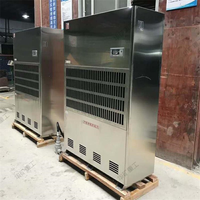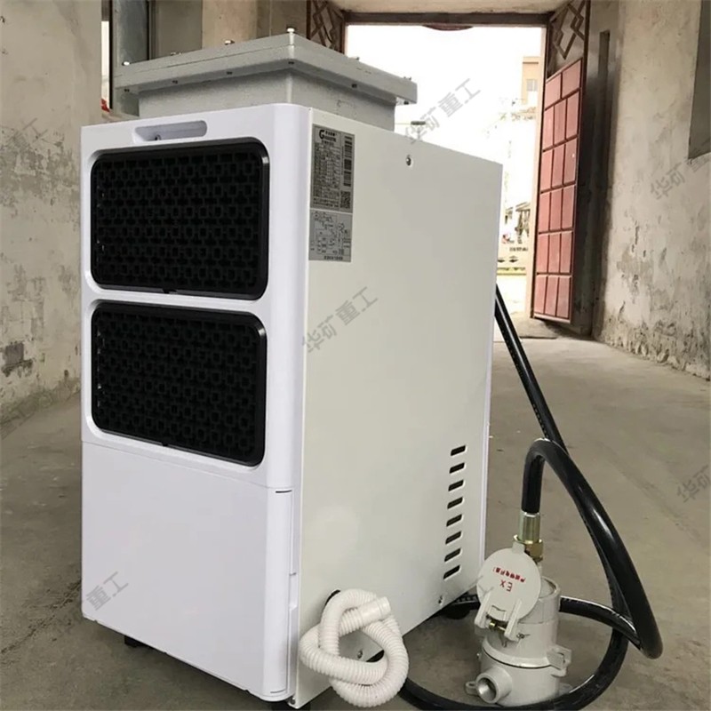 防爆除濕機(jī)通過風(fēng)機(jī)將潮濕空氣抽入機(jī)器內(nèi)部,通過壓縮機(jī)制冷將蒸發(fā)器降溫至露點以下,潮濕空氣經(jīng)過蒸發(fā)器在表面凝結(jié)成水,匯集至接水盤后,流入水箱中,干爽空氣經(jīng)冷凝器重新加熱由出風(fēng)口排出,這樣不斷循環(huán)將室內(nèi)濕度降低。