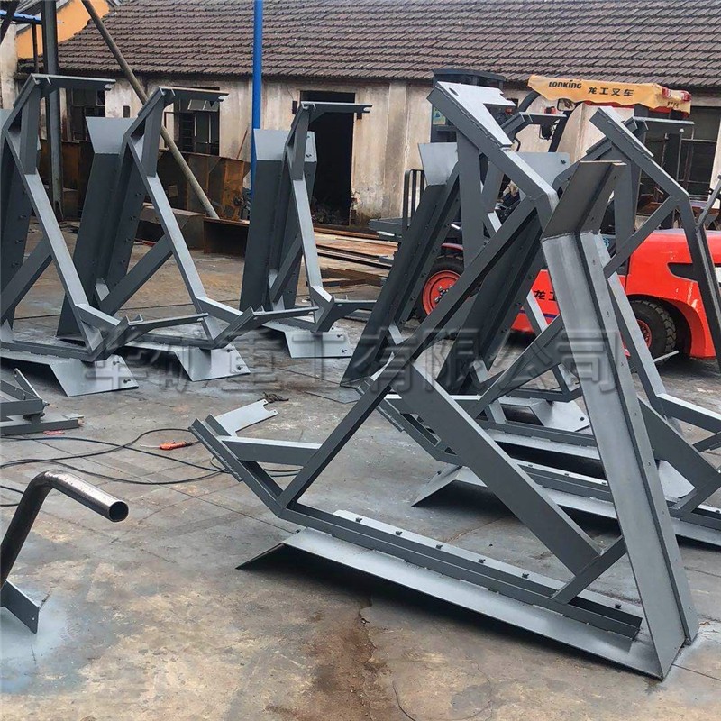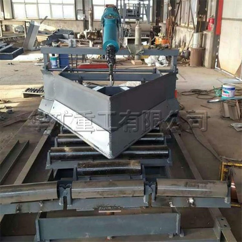 4.采用變形托輥組與電液推桿工作機(jī)械同步,推桿一個(gè)工作循環(huán),變形托輥組完成從槽形到平形再到槽形的自動(dòng)變換。