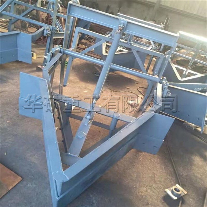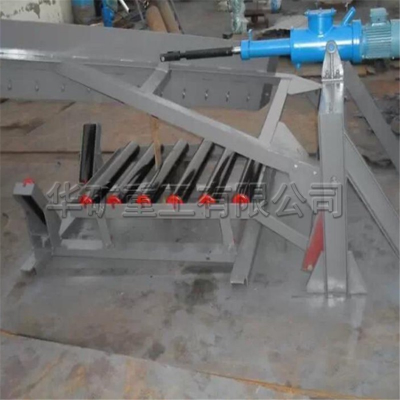犁式卸料器是安裝在膠帶輸送機(jī)的中間架上,能將膠帶輸送的物料均勻、連續(xù)卸入料斗或需要場(chǎng)所的皮帶輸料輔機(jī)。本卸料器比老式卸料器增加了可變槽角、副犁刀等,并改用電液推桿動(dòng)力源??朔死鲜叫读掀骼缌喜槐M、刮皮帶以及電動(dòng)推桿過載能力差,常燒毀電機(jī),頂彎絲杠,機(jī)械易損壞等缺點(diǎn)。電液動(dòng)犁式卸料器廣泛用于礦山、冶金、電場(chǎng)、煤場(chǎng)、集運(yùn)站、港口碼頭等輸送機(jī)的分段卸料。