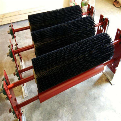 毛刷清掃器,毛刷借滾筒緊貼輸送帶的載荷面清掃卸載后粘結(jié)在輸送帶上的煤粉。毛刷清掃器在輸送機(jī)上有著不可忽視的作用。在運(yùn)行中,如果人為的清除機(jī)尾滾筒附著物,往往容易發(fā)生嚴(yán)重人身傷亡事故。而清掃器有及時、方便地、快速的清除滾筒附著物的特點(diǎn)。