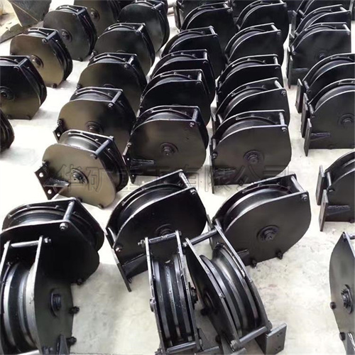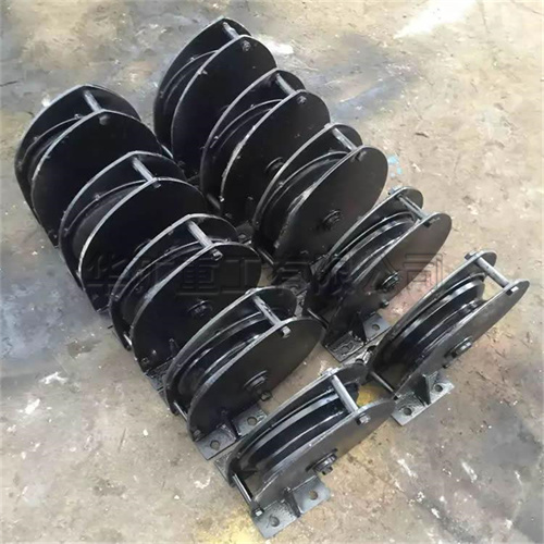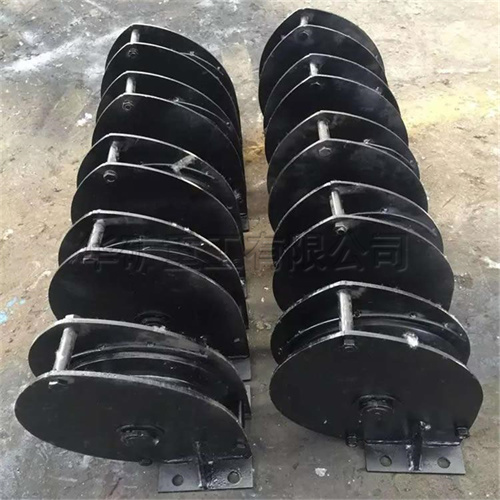 耙斗裝巖機(jī)導(dǎo)向輪又名滑輪,區(qū)別于尾輪。安裝在裝巖機(jī)的中部極端部,用以引導(dǎo)和改變鋼絲繩的方向.它由側(cè)板,繩輪,心軸,滾動(dòng)軸承等組成,并采用防塵結(jié)構(gòu),以延長(zhǎng)其使用壽命.耙斗裝巖機(jī)用導(dǎo)向輪用于對(duì)軟體管道或者鋼絲,尼龍繩等軟體線性物體移動(dòng)過程中的方向引導(dǎo)。導(dǎo)向輪帶有滑輪結(jié)構(gòu),在某些項(xiàng)目或產(chǎn)品中導(dǎo)向輪會(huì)起到省力的作用。耙斗裝巖機(jī)用導(dǎo)向輪由套筒、調(diào)節(jié)絲杠、腳輪、底座、轉(zhuǎn)向座和銷釘組成,套筒內(nèi)套裝有調(diào)節(jié)絲杠,調(diào)節(jié)絲杠的一端安裝有搖把,另一端通過調(diào)整絲母與腳輪架連接,腳輪架與腳輪連接;轉(zhuǎn)向座通過銷釘與底座連接,底座與轉(zhuǎn)向座上分別設(shè)有相同中心距的對(duì)應(yīng)孔,U型銷釘依次插入至轉(zhuǎn)向座和底座對(duì)應(yīng)孔內(nèi),U型螺栓將底座固定在拖車的矩形管上。