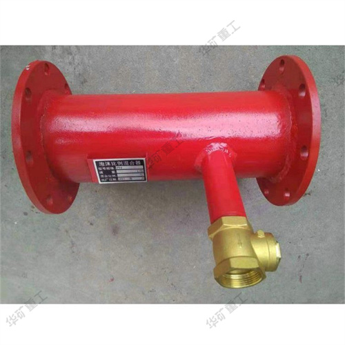 泡沫比例混合器主要由泡沫儲(chǔ)罐、橡膠膠囊、壓力式比例混合器、安全閥、進(jìn) 水管路、出液管路、排水閥、排液閥、排氣閥等組成。當(dāng)消防水泵壓力水源經(jīng)供水管道進(jìn)入 比例混合器減壓孔板時(shí),在孔板的前后會(huì)形成壓差。