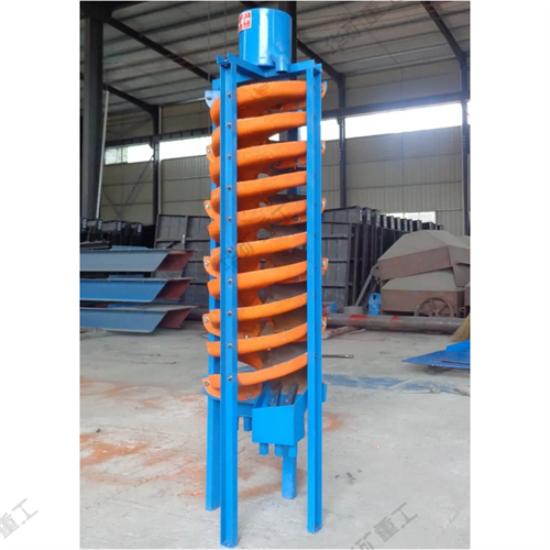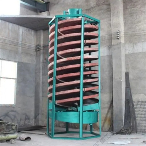 螺旋溜槽設(shè)備的主體部件,由玻璃鋼制成的螺旋片用螺栓連接而成。在螺旋槽的內(nèi)表面上涂以耐磨襯里,通常是聚氨脂耐磨膠或摻以人造金鋼砂的環(huán)氧樹(shù)脂。在螺旋溜槽的上部有分礦器和給礦槽,下部有產(chǎn)物截取器和接礦槽。整個(gè)設(shè)備用鋼框垂直地架起。螺旋溜槽的工作特點(diǎn)是在槽的末端分別截取精、中、尾礦,且在分選過(guò)程中不加沖洗水。