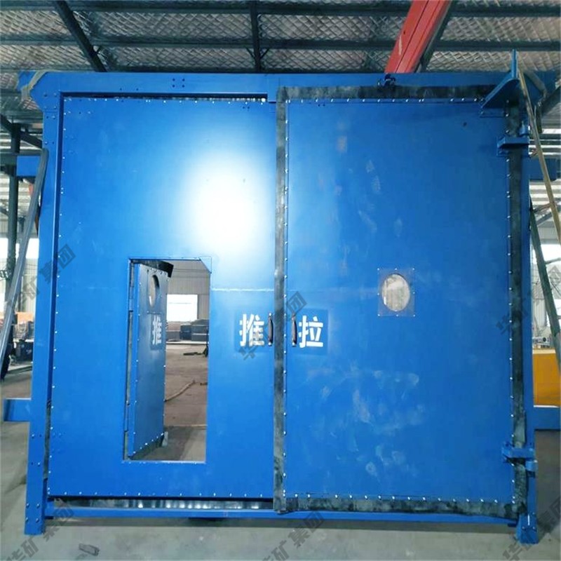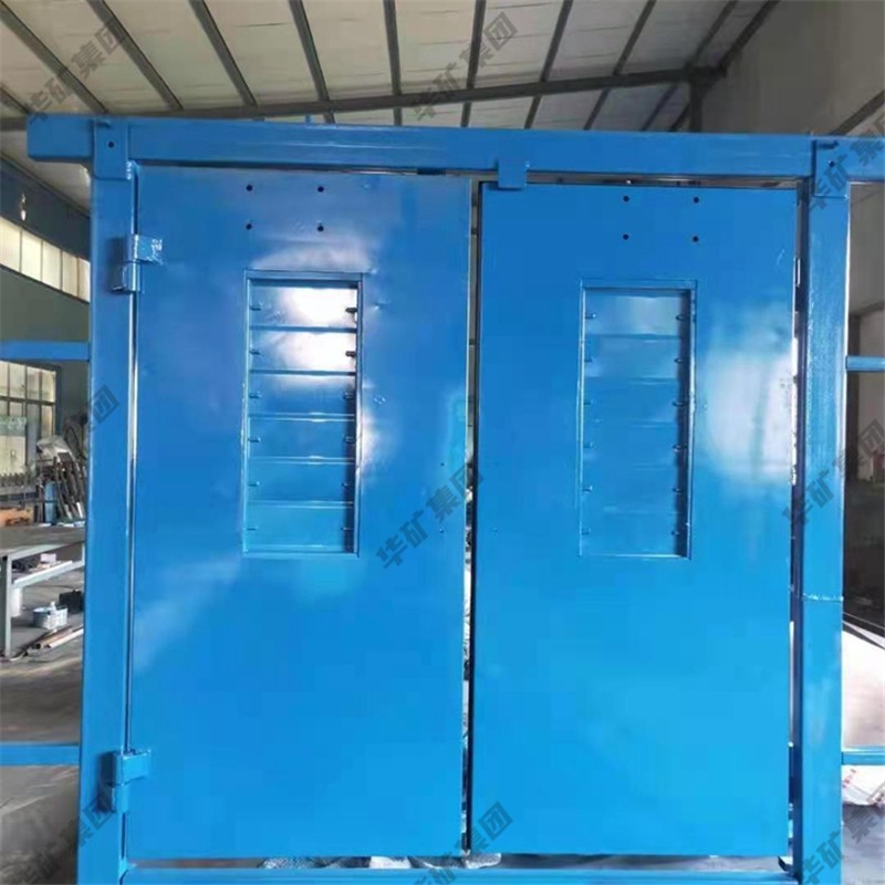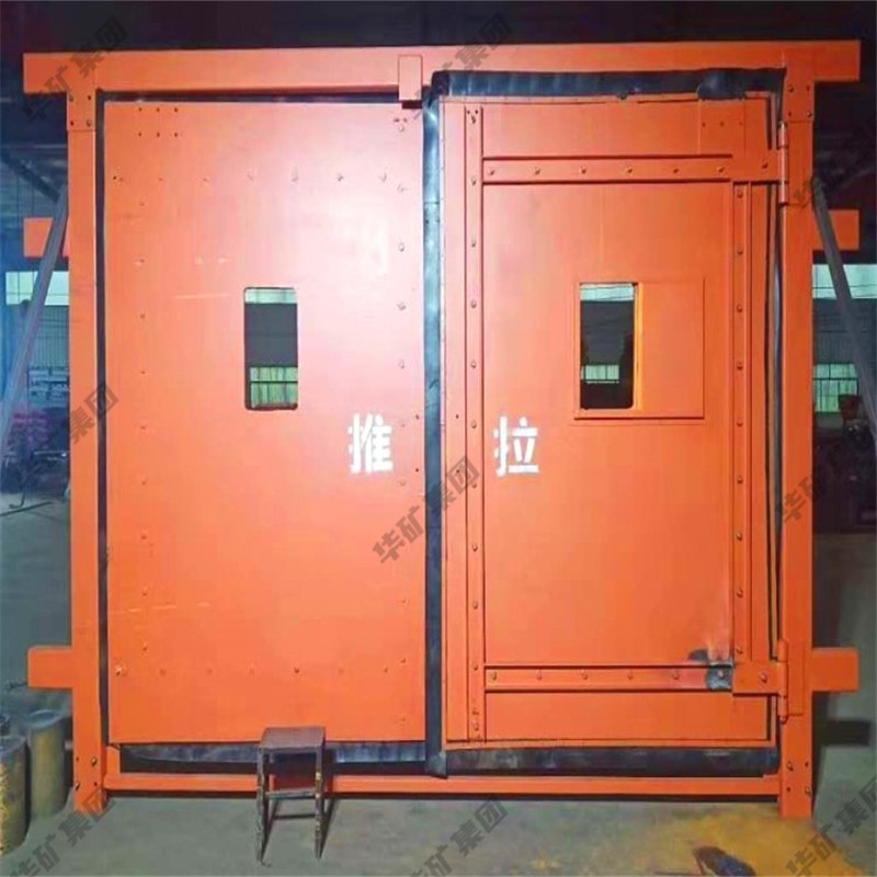 礦用無壓風(fēng)門主要用于礦山井下進回風(fēng)巷和主要進回風(fēng)巷之間每個聯(lián)絡(luò)巷中。雙扇無壓風(fēng)門運用聯(lián)桿平衡機構(gòu),開啟力小,不需再設(shè)反向風(fēng)門。