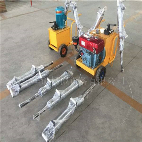 劈裂機又稱分裂機,劈裂器,劈石機,開山機等,按動力站類型可分為:電動型、柴油型、汽油型、氣動馬達(dá)四種。按分裂槍材質(zhì)可分為:鋼制分裂槍與鋁合金分裂槍兩種。另還可以按分裂槍力量的大小來分類。該產(chǎn)品主要用于建筑石材的開采作業(yè);大塊礦石(金屬礦、非金屬礦)的二次解體;混凝土構(gòu)件(水泥路面、機床基礎(chǔ)、橋梁及房屋構(gòu)件)局部和全部拆遷作業(yè);天然石材開采、分裂、破碎。與上述領(lǐng)域傳統(tǒng)作業(yè)方式相比較,結(jié)構(gòu)簡單,操作方便,效率高,成本低、安全、節(jié)能。與國外同類產(chǎn)品相比,具有極高的性價比(是國外產(chǎn)品價格的1/4左右)。該產(chǎn)品特別適用于大塊巖石的二次分裂,是一種完全可以取代爆破和手工解體的理想設(shè)備。