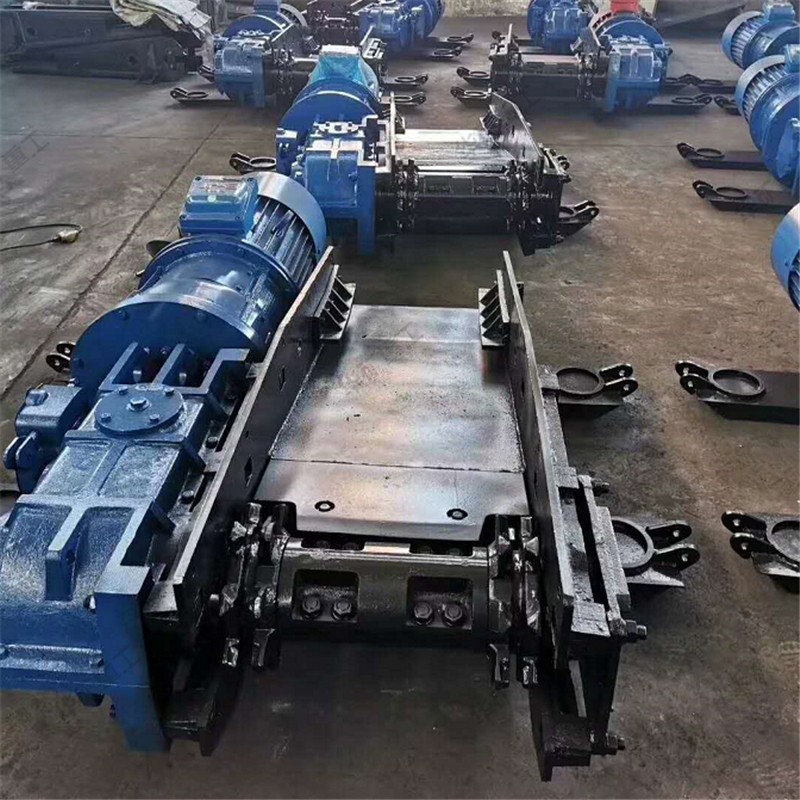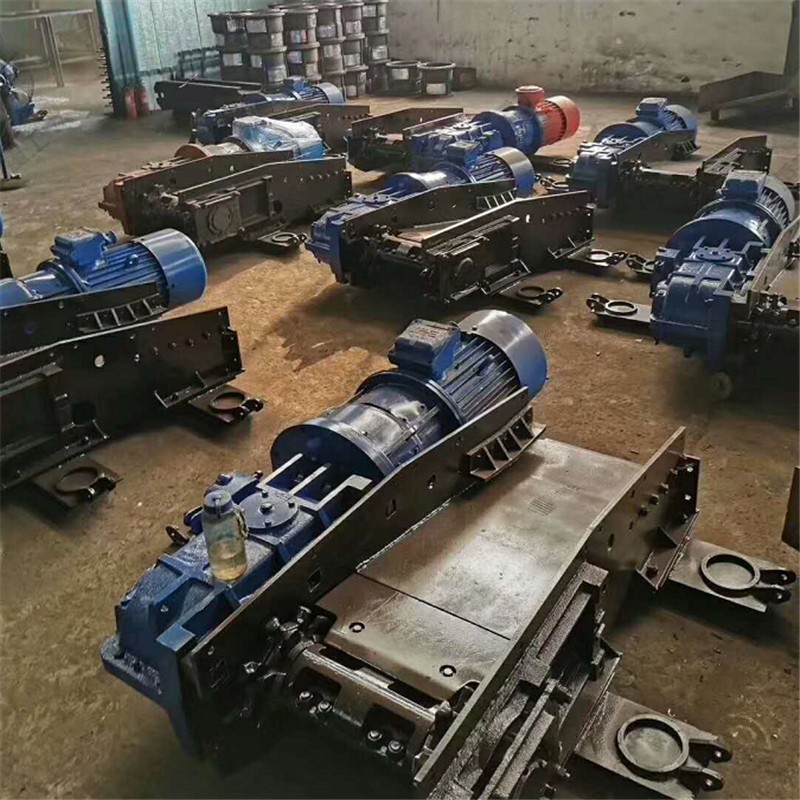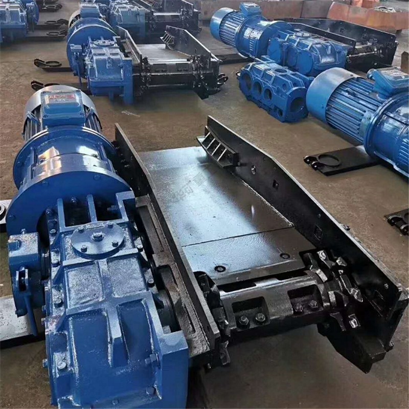 用刮板鏈牽引,在槽內(nèi)運送散料的輸送機叫刮板輸送機。它由機頭、中間部和機尾部等三個部分組成。此外,還有供推移輸送機用的液壓千斤頂裝置和緊鏈時用的緊鏈器等附屬部件。機頭部由機頭架、電動機、液力偶合器、減速器及鏈輪等件組成。中部由過渡槽、中部槽、鏈條和刮板等件組成。機尾部是供刮板鏈返回的裝置。