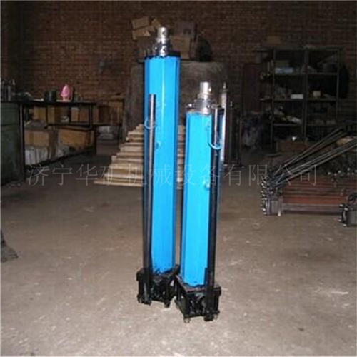 液壓推溜器,是為滿足煤礦炮采、普采工作面的需要而設(shè)計的手動移溜器具。與其它移溜器械相比,具有適應(yīng)性強、機動性好、操作省力、工效高、易維修、安全可靠,比集中供油的液壓千斤頂移溜可大量節(jié)省投資,經(jīng)濟上合算。 YT4-6A、YT4-8A液壓移溜器結(jié)構(gòu)為缸體外壁的前部和后部同向分別固定裝有前液壓閥和后液壓閥,在兩閥之間的缸體外壁相對的兩側(cè)固定裝有定位軸;缸體通過定位軸座落在固定座上的縱向長孔內(nèi);固定座的底部固定裝有底板,底板靠近活塞桿一端向上翹起;固定座的頂部固定裝有嗆頂座,嗆頂座上部的槽形結(jié)構(gòu)向后傾斜,并與水平面成20°-24°夾角。本實用新型設(shè)計合理,液壓注液槍注液與缸體分離,推溜器移動方便,缸體兩端可調(diào);活塞桿可與擋煤板連接時正常接觸,延長設(shè)備使用壽命。