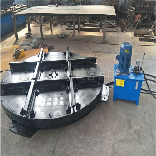 電動(dòng)液壓重型轉(zhuǎn)盤是改變軌道車輛方向的設(shè)備,與其他設(shè)備配套使用,可實(shí)現(xiàn)在0~180°范圍內(nèi)按需要設(shè)置固定的進(jìn)出線路。電動(dòng)液壓重型轉(zhuǎn)盤分為手推式和電動(dòng)遙控式。