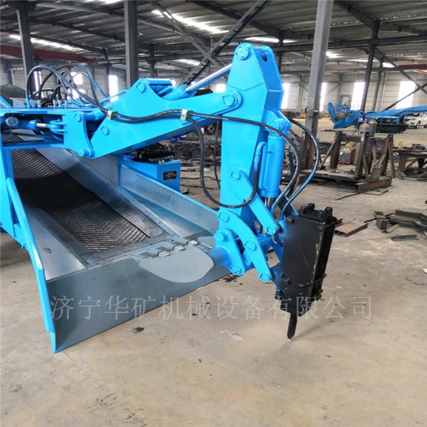 采用底盤分體設(shè)計(jì),通過力強(qiáng),可以靈活的通過巷道“小支脈”。輸送大架采用分體設(shè)計(jì),對于豎井礦山下井安裝極為方便。皮帶采用pvg高拉力阻燃帶使用壽命長,可保證掘進(jìn)巷道距離為360m以上。 挖掘式裝載機(jī)扒渣機(jī)具由轉(zhuǎn)彎靈活,操作簡單,掘進(jìn)巷道不用調(diào)頭,效率高