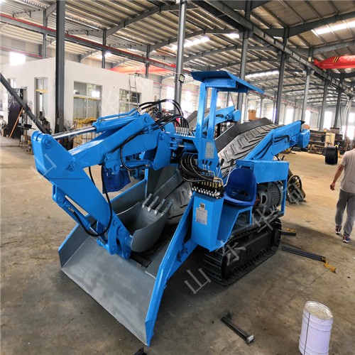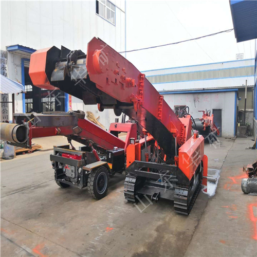 采用底盤分體設(shè)計(jì),通過(guò)力強(qiáng),可以靈活的通過(guò)巷道“小支脈”。輸送大架采用分體設(shè)計(jì),對(duì)于豎井礦山下井安裝極為方便。皮帶采用pvg高拉力阻燃帶使用壽命長(zhǎng),可保證掘進(jìn)巷道距離為360m以上。 挖掘式裝載機(jī)扒渣機(jī)具由轉(zhuǎn)彎靈活,操作簡(jiǎn)單,掘進(jìn)巷道不用調(diào)頭,效率高
