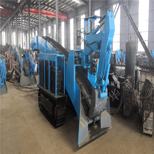 采用底盤分體設計,通過力強,可以靈活的通過巷道“小支脈”。輸送大架采用分體設計,對于豎井礦山下井安裝極為方便。皮帶采用pvg高拉力阻燃帶使用壽命長,可保證掘進巷道距離為360m以上。 挖掘式裝載機扒渣機具由轉彎靈活,操作簡單,掘進巷道不用調頭,效率高